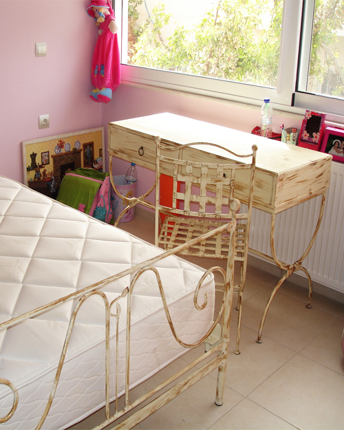 Mεταλλική τουαλέτα με δύο συρτάρια σε χρωμα πατινα χρυσου με μπεζ .