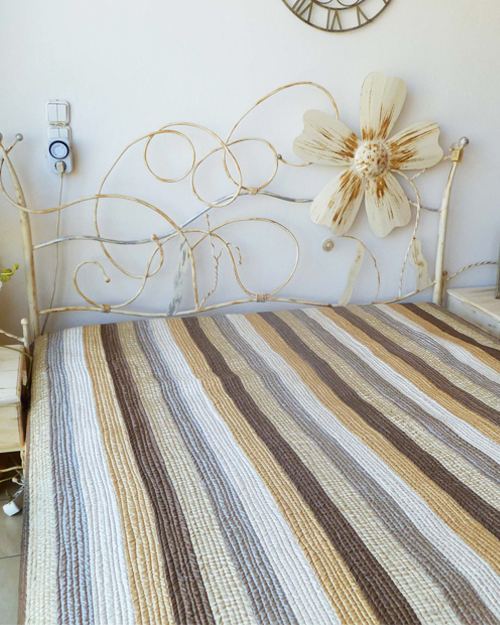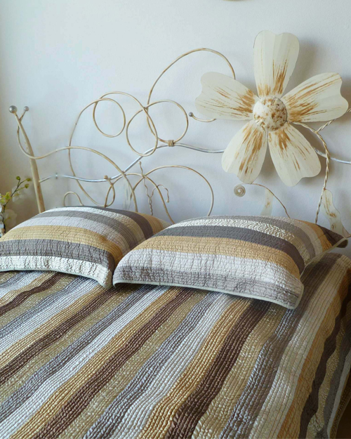 Μεταλλικό χειροποίητο κρεβάτι από μασίφ σίδερο σε μπεζ χρώμα με πατίνα χρυσού και ασημιού.